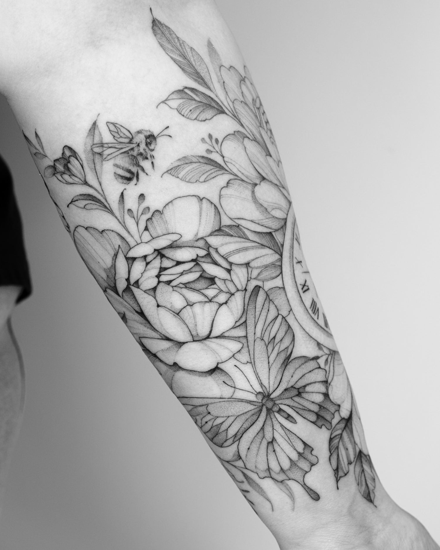 Born in the Netherlands and now rooted in Nanaimo, Kansinee draws inspiration from nature and her travels. Her work blends fine line precision with organic flow, creating tattoos that feel connected to the body and the natural world.